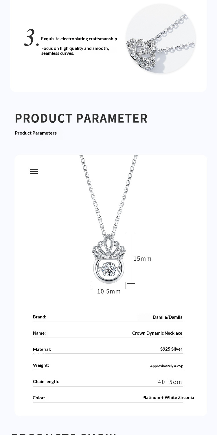 S925 Sterling Silver Crown Delicate Necklace For Women