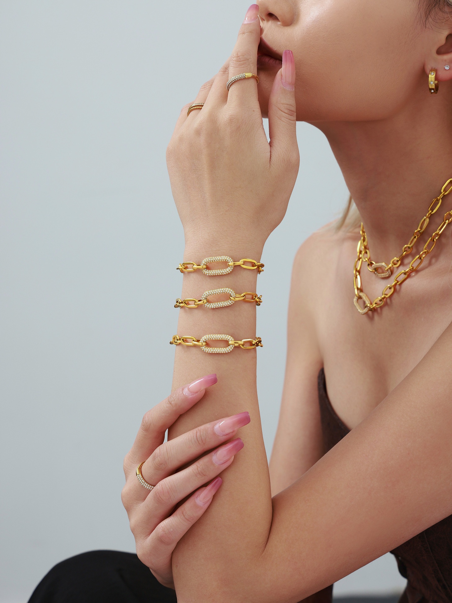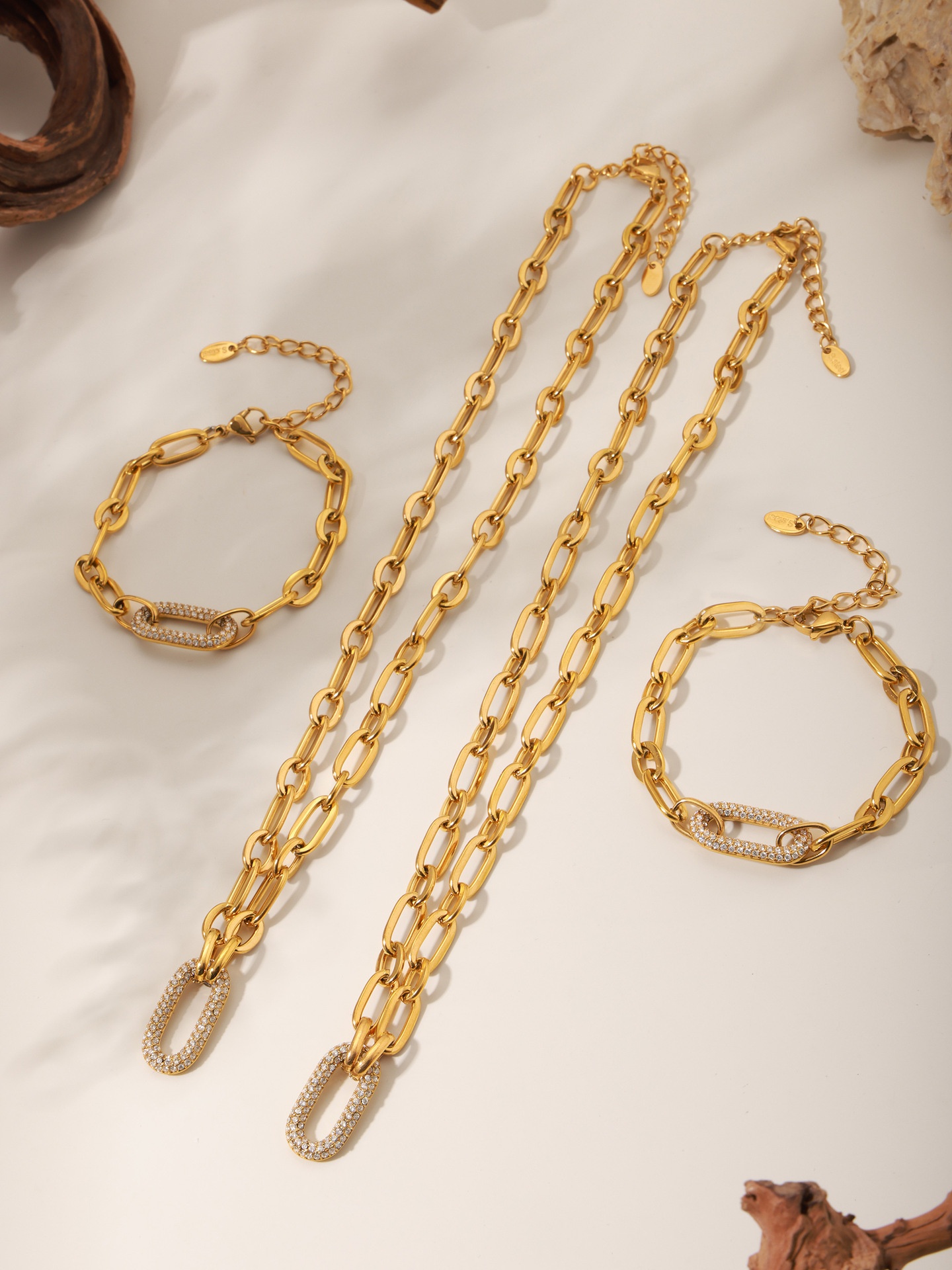 Titanium Steel Jewelry Stainless Steel Micro-pave Zircon Clavicle Necklace And Bracelet