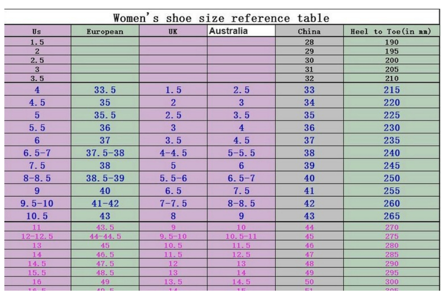 Sizes: 34, 35, 36, 37, 38, 39, 40, 41, 42, 43