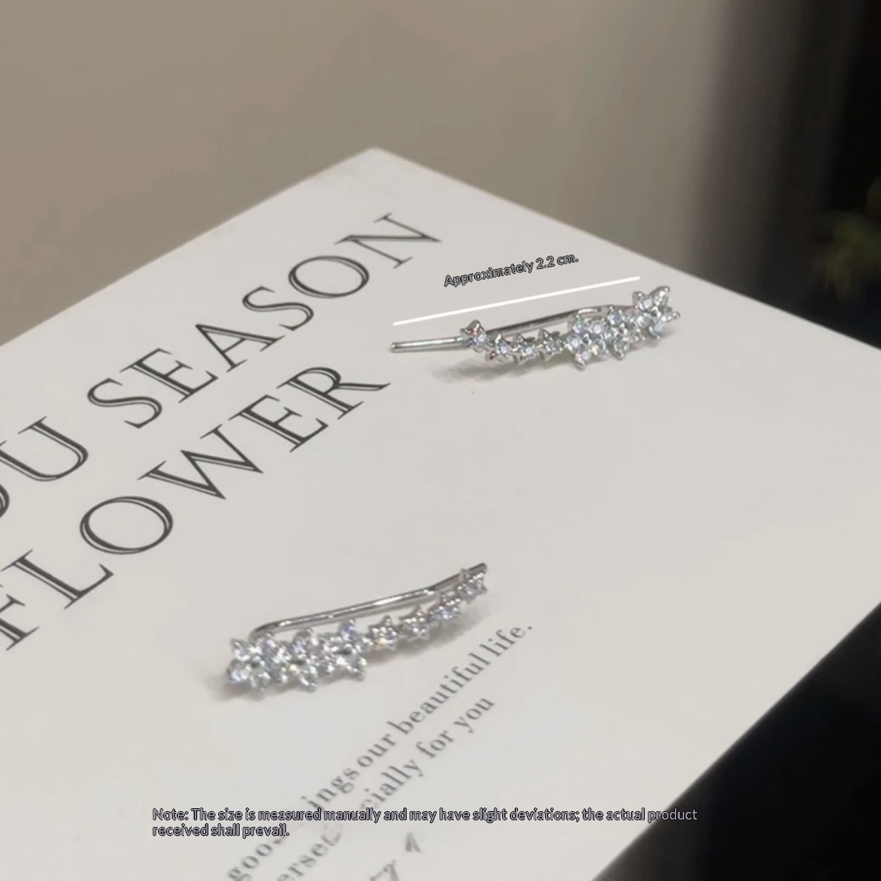 Womens Sparkling Flower Stud Earrings With A Single Row Of Diamonds